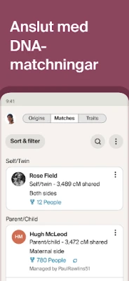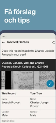 Ancestry® öppnar dörren till en skattkista av information. Med ett abonnemang får du tillgång till miljarder historiska register, foton och dokument, där appen dynamiskt presenterar nya upptäckter och tips specifikt för ditt träd. Fördjupa dig ytterligare genom AncestryDNA®, där du kan aktivera ditt kit, avslöja din etniska bakgrund och jämföra resultat med DNA-matchningar. Genom att integrera dina DNA-insikter med ditt släktträd får du en enastående bild av hur din genetik formats av din släkts resa. Du kan även utforska hur dina gener påverkar över 35 personliga egenskaper, från fysiska attribut till näringsämnen.