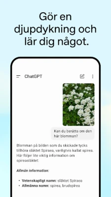 ChatGPT erbjuder enastående mångsidighet för att möta dina dagliga behov. Använd det innovativa röstläget genom att bara trycka på hörlursikonen – perfekt för att få en berättelse uppläst på resan, eller för att hitta en lösning på en familjediskussion över middagen. Med fotouppladdningsfunktionen kan du enkelt transkribera handskrivna recept eller genast få svar och information om nya platser du utforskar. Din personliga AI-assistent är alltid redo att lyssna och förstå, oavsett situation.