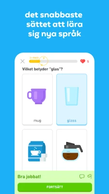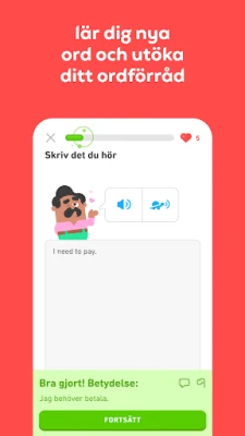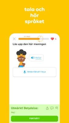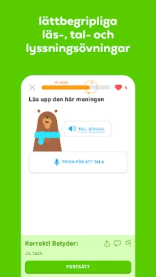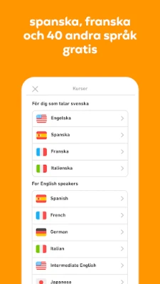 Upptäck Duolingo, den roliga och gratis appen för språkinlärning. Lär dig över 40 språk med snabba, små lektioner. Öva på att tala, läsa, lyssna och skriva för att bygga upp ditt ordförråd och förstärka din grammatik.