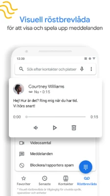 Aldrig mer behöver du ringa upp för att lyssna på röstmeddelanden. Telefonappen revolutionerar din röstbrevlåda med visuella meddelanden, så att du kan se, spela upp och hantera dem direkt i appen, i den ordning du önskar. Läs bekvämt transkriberade texter och välj att spara eller radera meddelanden med en enda beröring. Allt detta presenteras i en design som sätter användarvänlighet i fokus. Dina viktigaste kontakter är alltid bara ett tryck bort, och med det flexibla mörka läget kan du spara batteri och ge dina ögon en behaglig upplevelse under kvällstid.