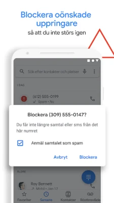 Upptäck en smartare och tryggare telefonupplevelse med Telefonappen, utvecklad av Google. Förvandla hur du hanterar inkommande samtal genom att omedelbart se vem som ringer. Tack vare Googles omfattande nummerpresentation identifieras företag och kända uppringare, vilket ger dig lugn och möjlighet att svara med tillförsikt. Dessutom fungerar appen som din personliga sköld mot oönskade störningar; du får proaktiva varningar för misstänkta spam-samtal, telefonförsäljare och potentiella bedrägeriförsök. Ta kontroll över din kommunikation genom att enkelt blockera nummer och filtrera bort oönskade samtal innan de ens når dig.