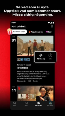 Biblioteket hos Netflix är ständigt levande, med nya titlar som adderas kontinuerligt. Utforska de senaste tillskotten, återupptäck tidlösa favoriter eller sök efter ditt nästa binge-värdiga äventyr – allt med enkelhet. Ju mer du tittar, desto smartare blir din upplevelse. Netflix anpassar sig efter dina preferenser, och presenterar skräddarsydda rekommendationer som garanterat kommer att tilltala dig, vilket förvandlar varje session till en personlig resa genom underhållningens landskap.