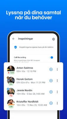 Truecaller omdefinierar din mobila upplevelse genom att skapa en säkrare och mer transparent kommunikationsmiljö. Med en omfattande databas, ständigt uppdaterad av miljontals deltagare världen över, står Truecaller i framkant för att identifiera okända nummer och effektivt skydda dig mot bedrägerier och oönskad telemarketing. Denna kollektiva intelligens säkerställer att du alltid har den mest aktuella informationen till hands, vilket förvandlar osäkerhet till trygghet vid varje inkommande samtal eller meddelande.