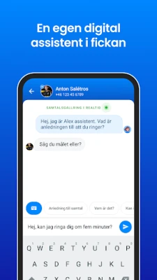 Upplev nästa generations samtalsfiltrering med Truecaller Assistant, en intelligent digital följeslagare driven av avancerad AI. Denna assistent besvarar diskret dina samtal för att förhandsgranska uppringaren, ställa relevanta frågor och omedelbart avgöra samtalets natur med imponerande precision. Detta ger dig full kontroll att besluta om du vill svara, samtidigt som den minimerar störande eller skadliga samtal. För att ytterligare höja din produktivitet och minnesförmåga, inkluderar Truecaller en integrerad samtalsinspelare. Denna funktion fångar inte bara viktiga konversationer utan organiserar dem även med AI-genererade ämnen, genererar koncisa sammanfattningar och omvandlar tal till text för enkel referens.